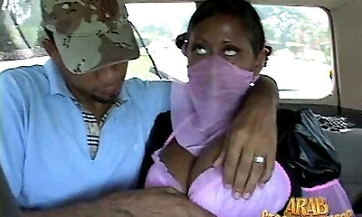 Ugly fat bitch jerks off dick in the van